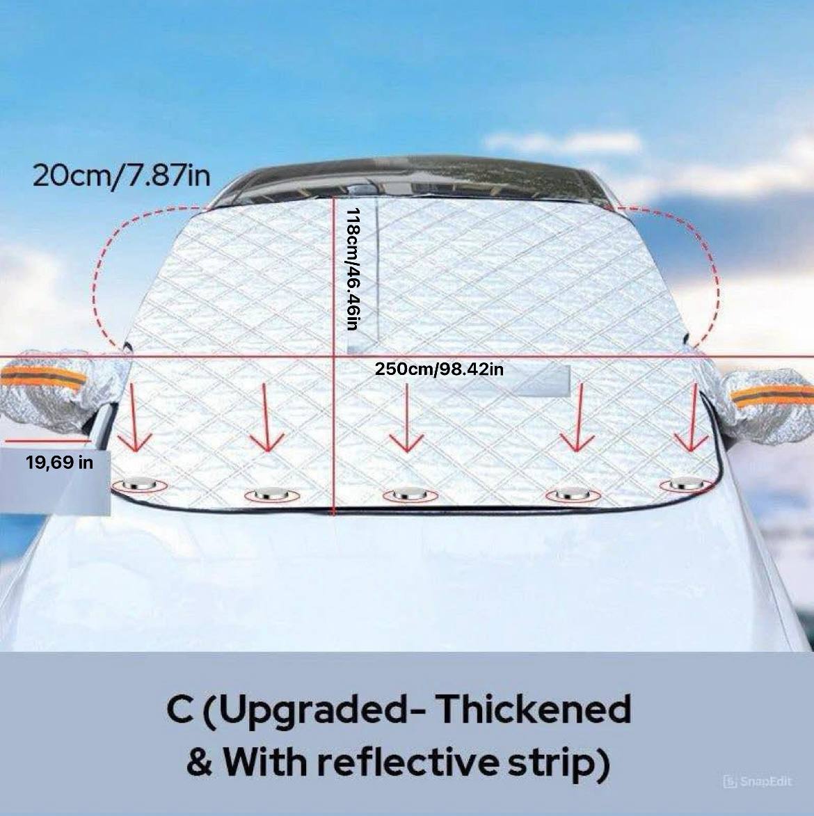 - ⛄Easy To Store: This car windshield cover will not take up valuable space in the car. It can be folded into a small part of its size and can be easily stored in a suitcase or glove box.